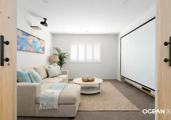 Three living spaces including an open-plan family zone, dedicated theatre room and an upstairs rumpus