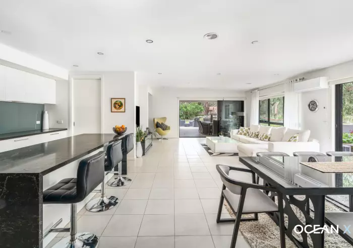 Set on a beautifully landscaped over half acre allotment, this boutique built residence offers a refined blend of modern design, natural outlook and family flexibility. Framed by large established trees and backing onto a peaceful reserve, the home enjoys a rare sense of openness and privacy, with the master suite positioned at the rear to capture uninterrupted garden views. Across the property, multiple outdoor living spaces — from the spacious alfresco to the firepit zone surrounded by rustic seating — create a lifestyle centred around relaxation, entertaining and connection to the landscape.
